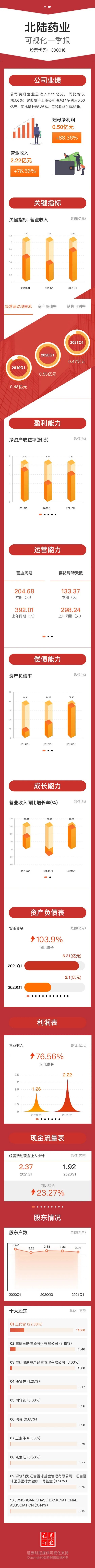 今日,北陆药业正式发布《2021年第一季度报告》。公司2021年第一季度实现营业收入22,207.60万元,同比增长76.56%,较2019年第一季度增长28.74%;实现归属于上市公司股东的净利润5,045.19万元,同比增长88.36%,较2019年第一季度增长24.37%;实现归属于上市公司股东的扣非后净利润4,585.68万元,同比增长64.84%,较2019年第一季度增长16.47%。新冠疫情对公司业绩的影响已消除,公司已恢复疫情前的增长态势。