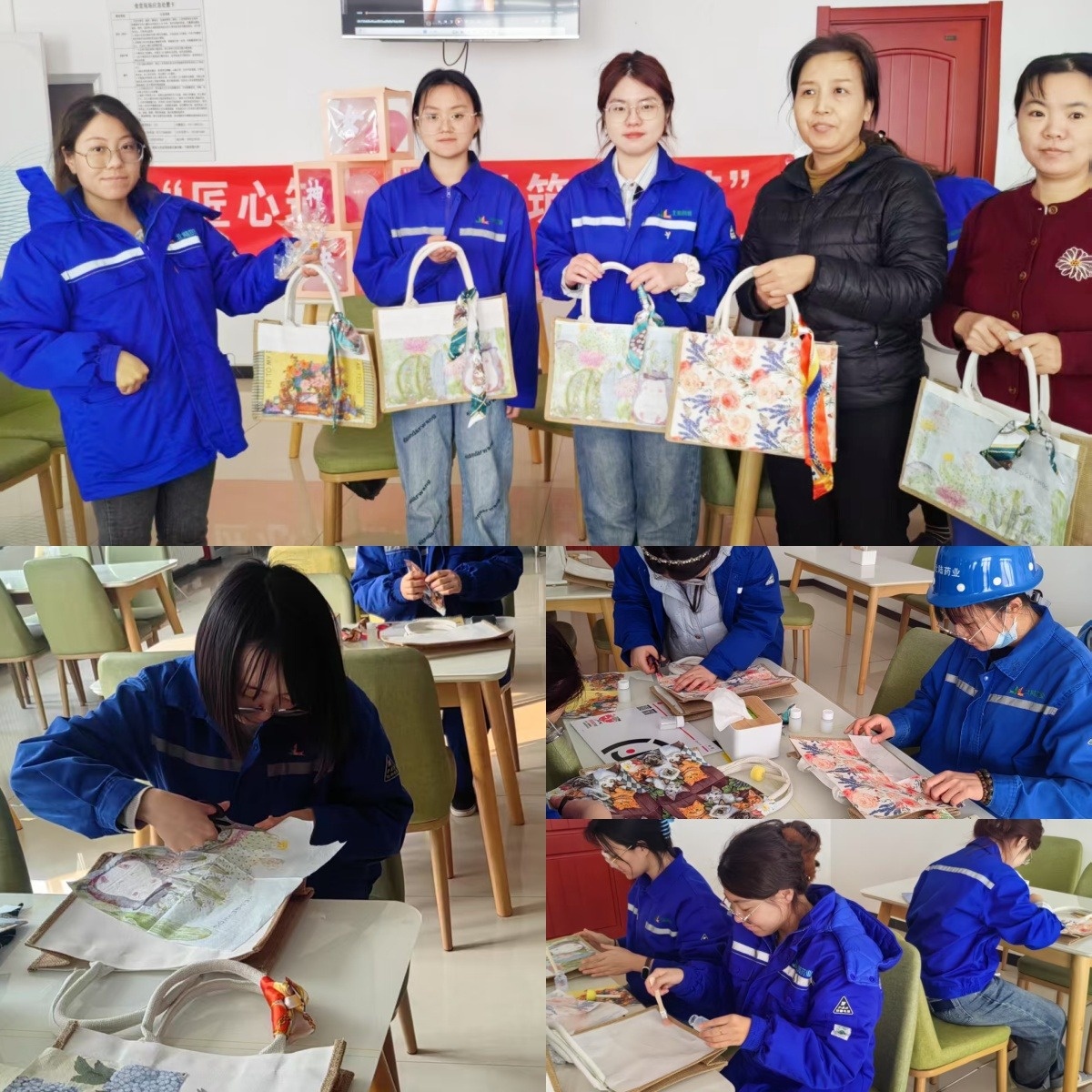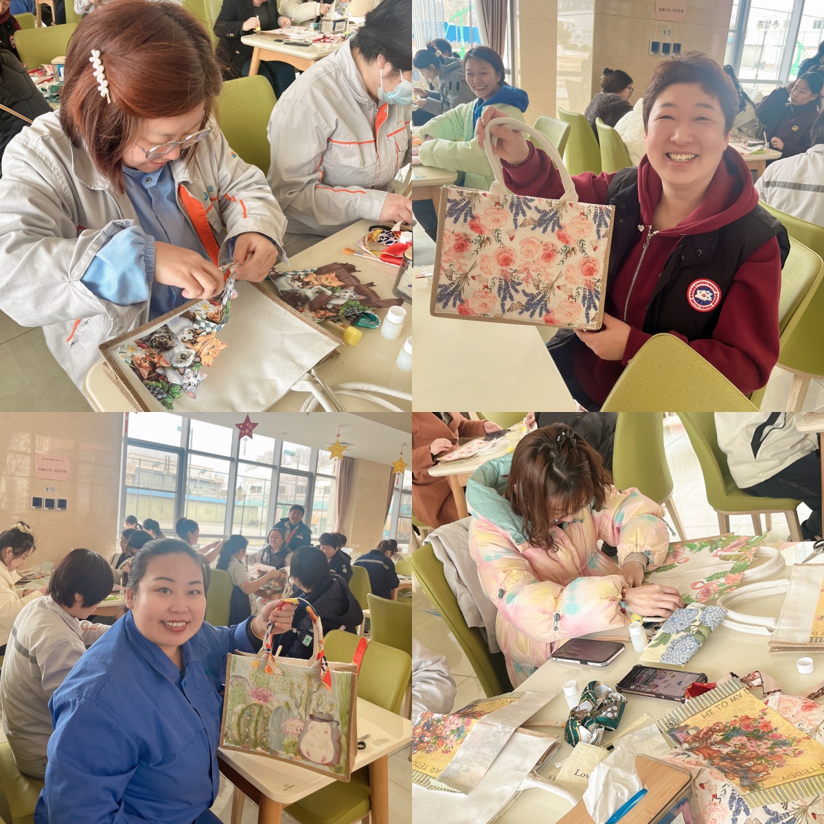 密云药厂的小伙伴们,用贴纸为帆布包添彩,展现出别样的灵动;