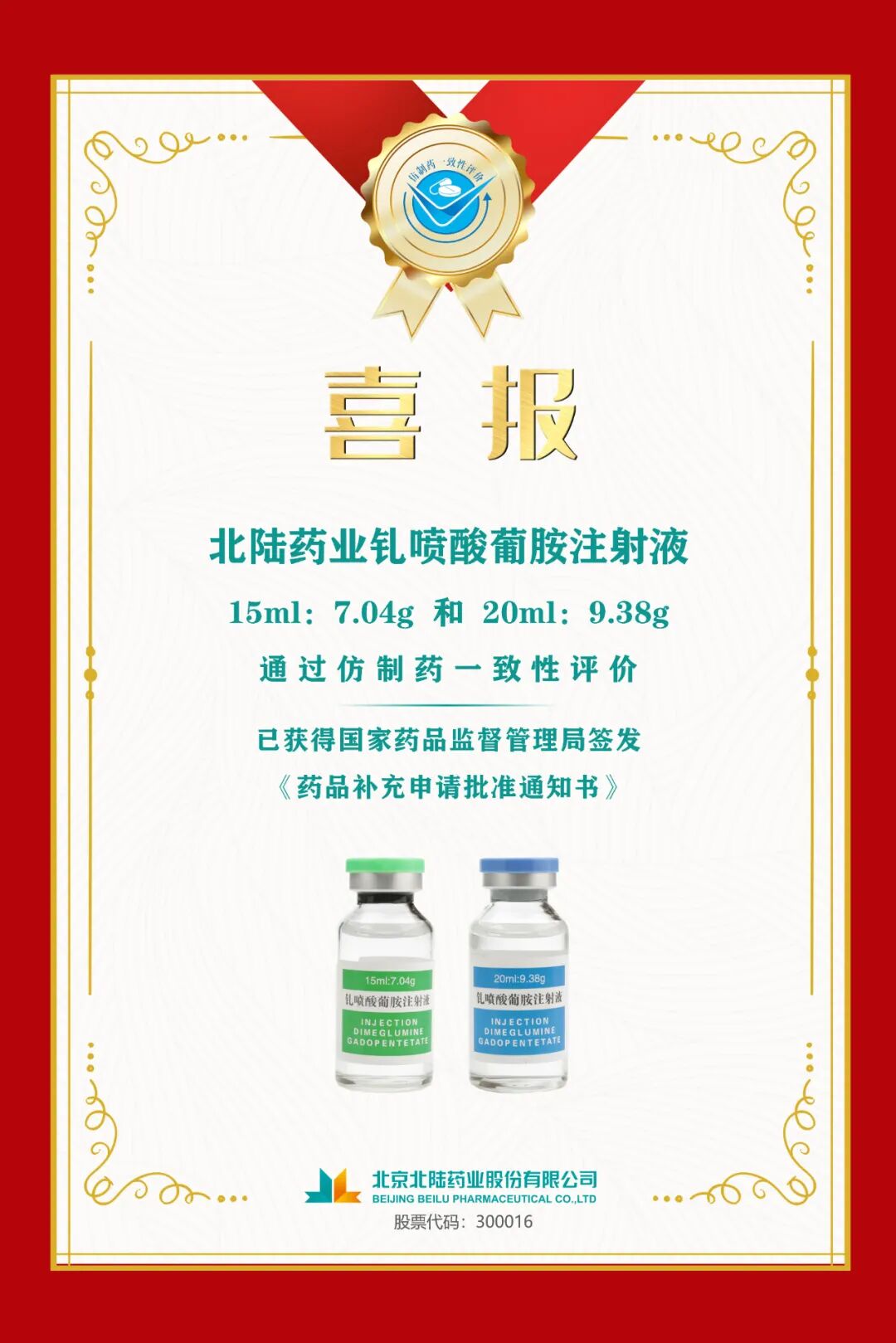 北陆药业又双叒叕一个对比剂产品通过一致性评价!